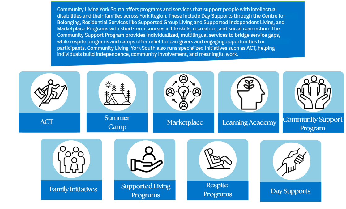 Our day and outreach services offer options for people and families seeking support in various areas of their life such as daily life skills, communication and learning. People may require support so that they can live in the community, go to school, volunteer, work, make friends, and participate in the community.